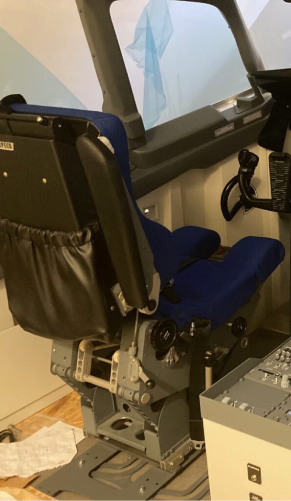 De originele blauwe stoelbekleding van de Fokker 50 stoel wordt binnenkort vervangen door een OEM 737 kussen set. Het geluk deed zich voor dat ik deze set onlangs heb kunnen over nemen. Dit staat toch net wat beter in een 737 cockpit! Ook heb ik alvast een Buttkicker geïnstalleerd op de achterkant van de captain stoel. Later meer hierover op deze site.